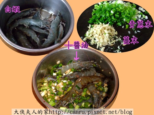 主要食材:白蝦、青江菜(下圖中的食材名稱為了避免看不清楚,所以我有放大)