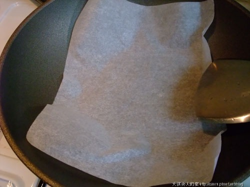 一樣,撕下一段料理紙,鋪在鍋內,