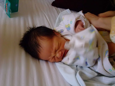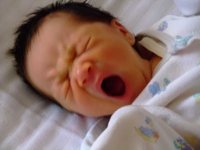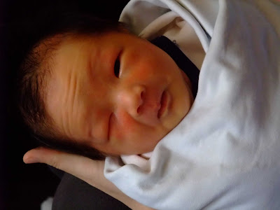 ,他大哭時,總是哭得很用力,用力到整個臉皺成一團,而且每次都這樣,才出生沒多久,他兩邊眉毛中間(靠近左眉)已經出現因為生氣、哭泣時用力擠出來的皺紋了。