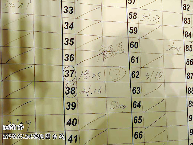 比賽結束後,2號跑道(37號)是我們那組的第一名(18秒25),而我們38號則是第二名(21秒16)。
